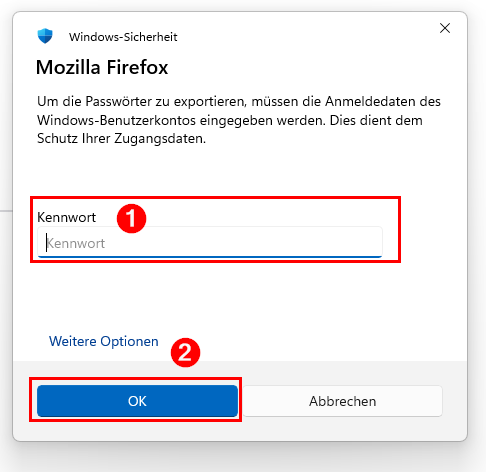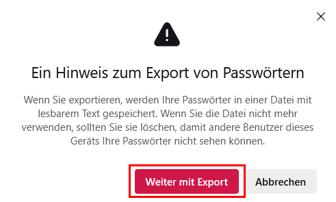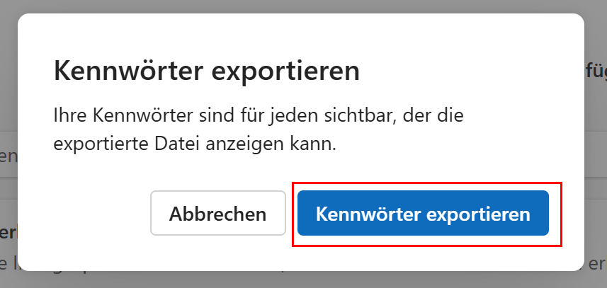 - Erneut mit „Kennwörter exportieren“ bestätigen: