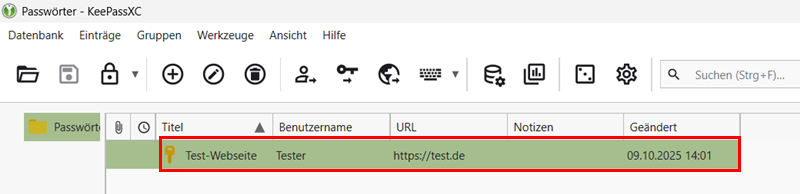 - Nach erfolgreichem Import der CSV-Datei werden die Einträge in KeePass XC angezeigt: